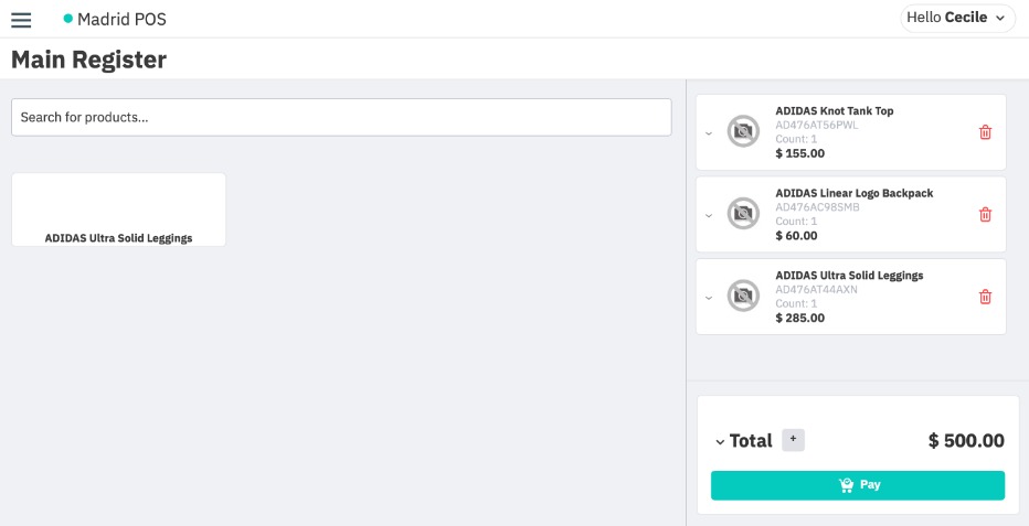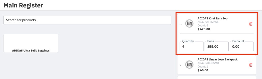 Once you have added a product/s to the sale, they will appear on the right-hand side of the screen in the shopping cart.