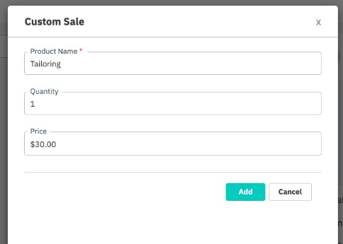 When making a sale, click Add → Quick Sale. and enter the service details.
