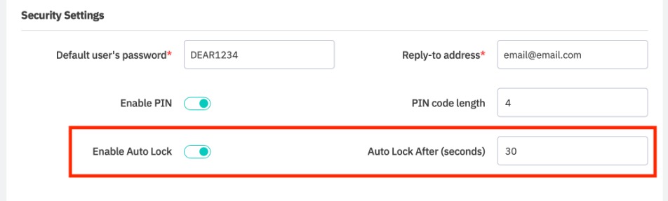 If the Enable PIN setting is active, the lock screen will prompt the user to enter their security PIN. If Enable PIN is not active, the user will need to login again with their email and password.
