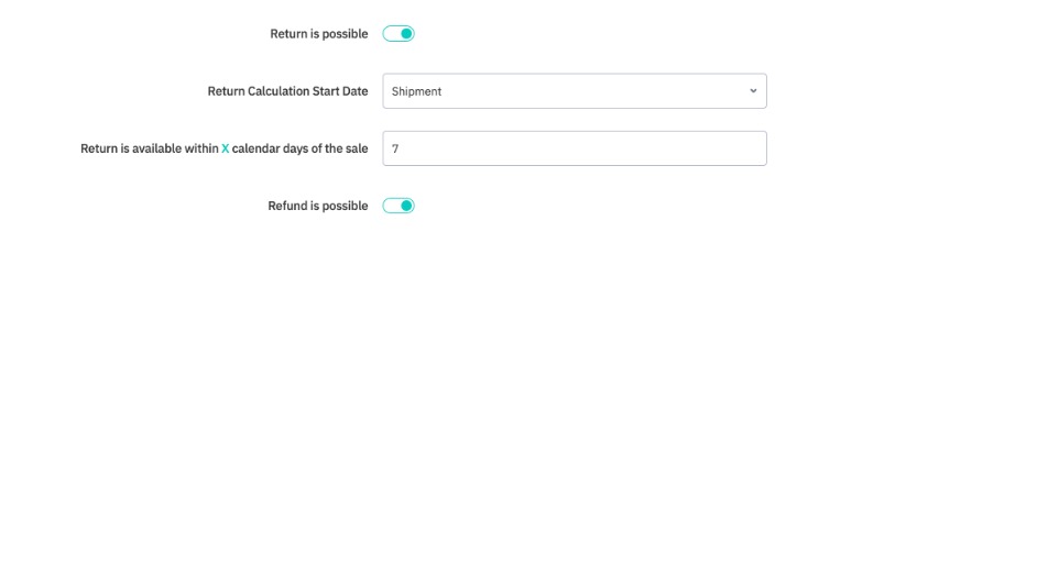 Return is available within [X] calendar days of the sale: Defines how long (in days) it is possible to return the product.