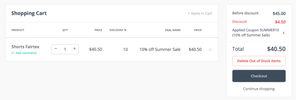 Active product deals and discounts are applied automatically to an order total as soon as the deal conditions are met. The user does not have to carry out any additional action.