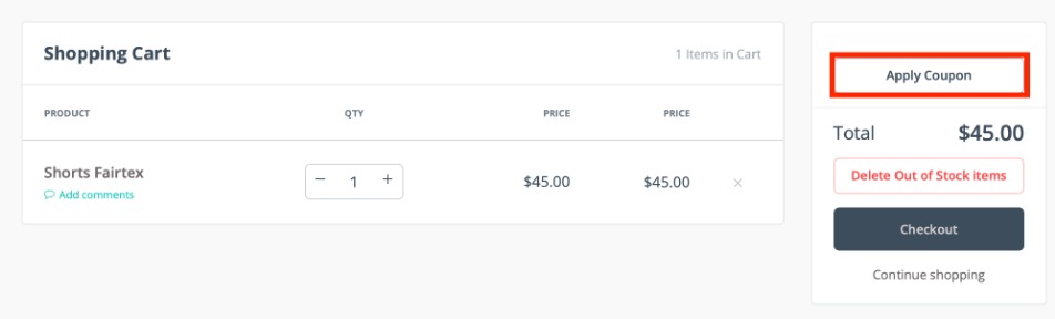This will open a popup window where you can enter your coupon code.