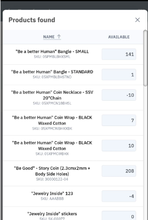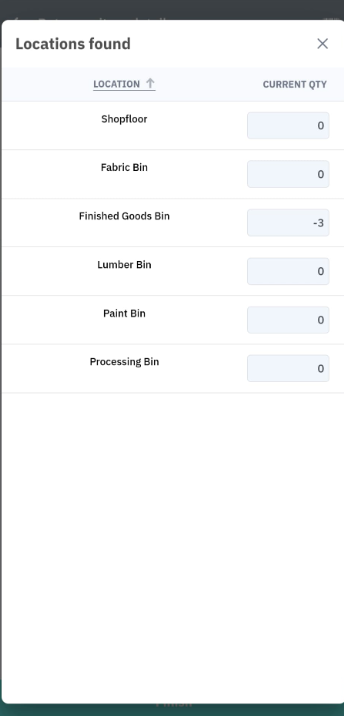 Enter or scan a product name or SKU to search for a product. Alternatively, press the search icon to display all product inventory at that location, including products not currently in stock.