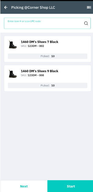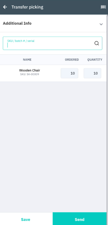 Scan the SKU or batch/SN number or enter it manually. You may then need to press enter on your device keypad if entering the number manually. Enter the picked quantity or scan all instances to add them to the picked list. Partial picking is allowed.