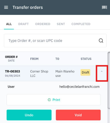 Undo a stock transfer to return it to draft status while saving the item details and quantities. Void a stock transfer to delete all transfer information. You will no longer be able to undo or void a transfer if the transferred items have been sold, written-off, or used for production.