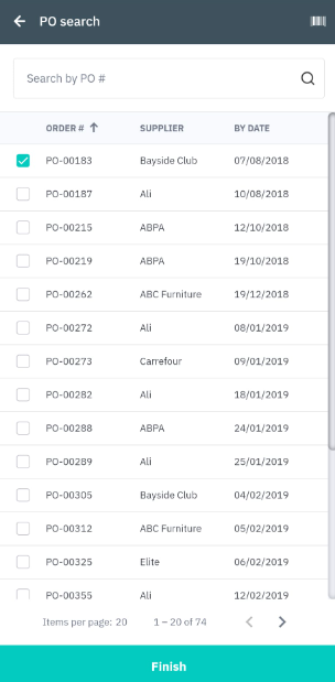 Search the list for the required PO number. Alternatively, leave the field blank and click search to view all purchase orders with stock to receive.