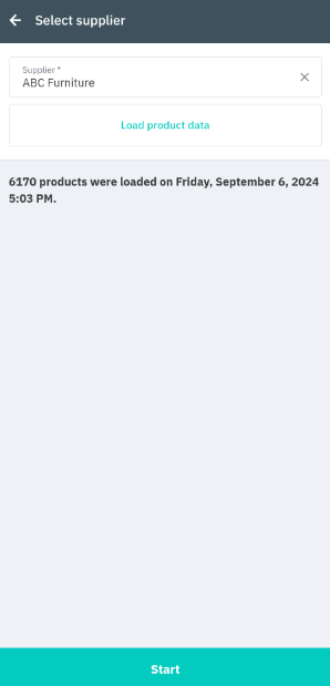 Choose a Supplier and tap Load product data. Once a supplier has been selected, this will be saved in local storage as default for future receiving inventory without a PO actions. You can return to the select supplier screen to edit the default supplier if required.