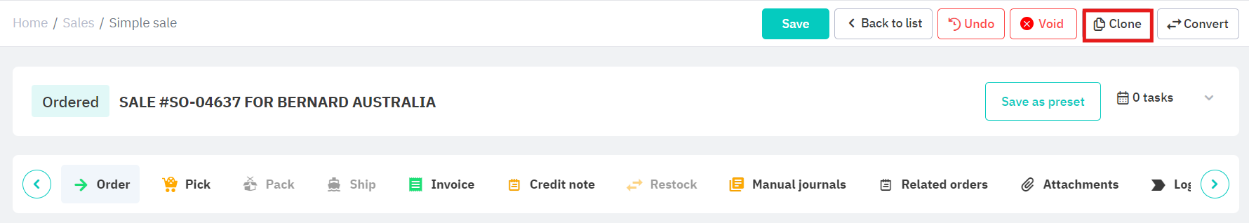 Select Clone at the top of the screen if this is a simple sale or service sale.