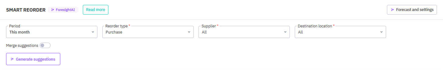 Smart reorder provides replenishment suggestions to optimize your inventory and stock levels.