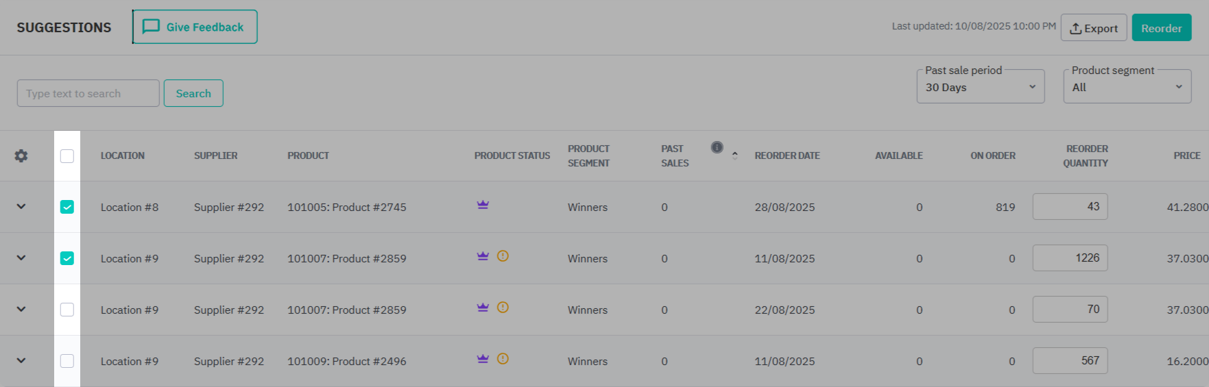You can get even more out of your Smart reorder suggestions by exporting these into a .csv file. This will allow you to review these suggestions in a spreadsheet or import into other software.