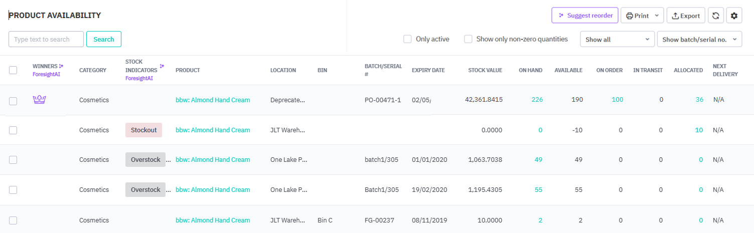 ForesightAI enhances the Product Availability Report to give extra information about stock performance and availability.