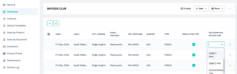 Cin7 Core allows you to specify customer addresses as tax-exempt.