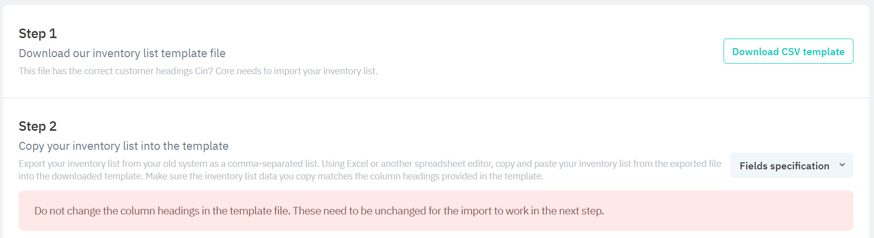 Download the Inventory list CSV template.