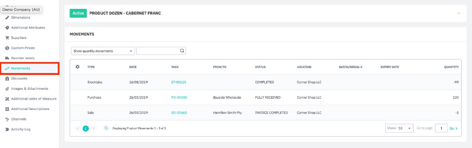 View a record of all movements and transactions for this product or service.