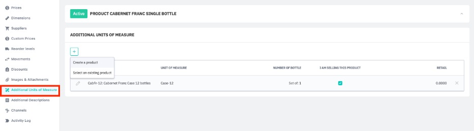 Use Additional units of measure to specify more than one unit of measure for a product or service. For example, if the same bottle of wine is sold as an individual bottle, a case of 6, and a case of 12.