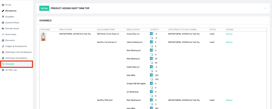 Manage how a product appears in your connected sales channels from the Channels tab. You can list, unlist, or remove a product from a store and update the product information as shown in a store from here.