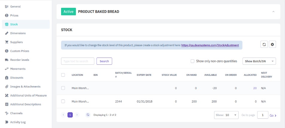 View the availability of the product in your different locations and stock value from the Stock tab. From here, see quantities on hand, available, on order, and allocated, and when your next planned deliveries will take place.