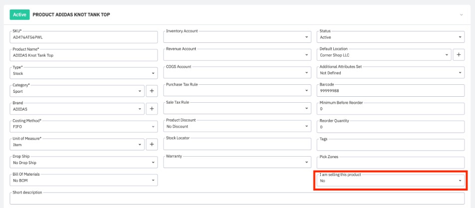 Change the I am selling this product field to No.