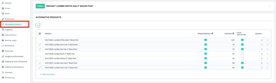 Set alternative products; interchangeable, very similar, or comparable products that can be substituted during a sale or during production if the original product is out of stock.