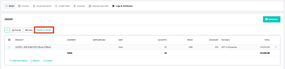 When at the Order stage of a purchase order, click Verify order. This is the same for simple or advanced purchases.
