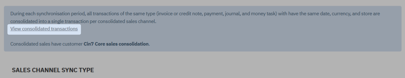 You can decide how Cin7 Core will consolidate Invoices (sales and credit notes), COGS, and Payments per sales channel.