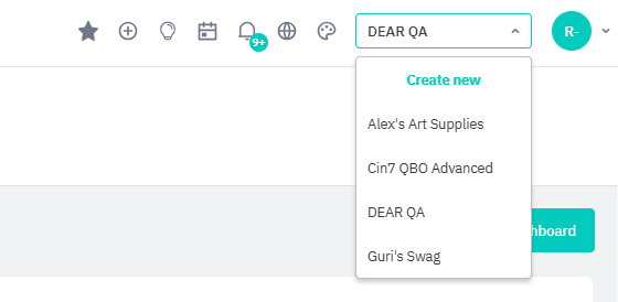 If you belong to more than one Cin7 Core account, switch between them by opening the account menu and selecting which account to switch to.