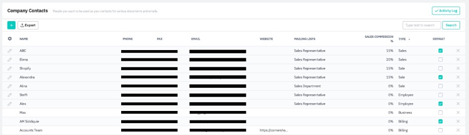 To export your company contacts to a CSV file, click Export. To view historical changes to your company contacts, open the Activity Log.