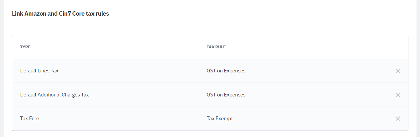 Link Amazon and Cin7 Core tax rules
