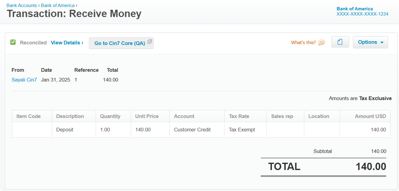 When a customer credit is applied to a sale quote, it is synced to Xero as Money received to the customer credit account.