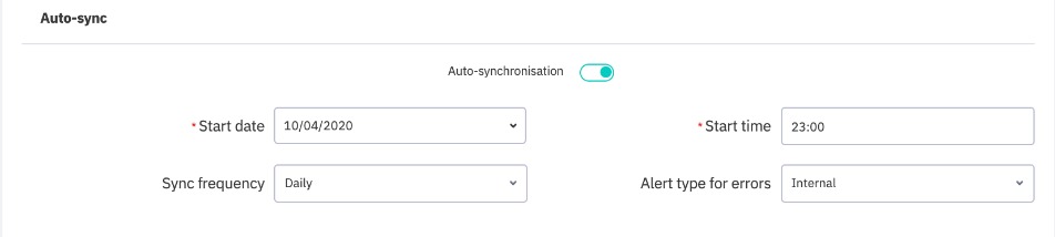 Select Auto-sync frequency from 2h, 4h, 8h, 12h, Daily.