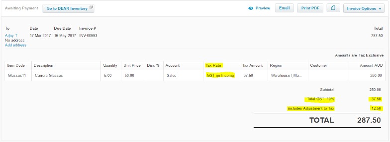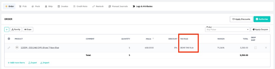 The correct tax amount will still be seen within your accounting application with an adjustment shown for the difference when you use this tax rule on an invoice in Cin7 Core.