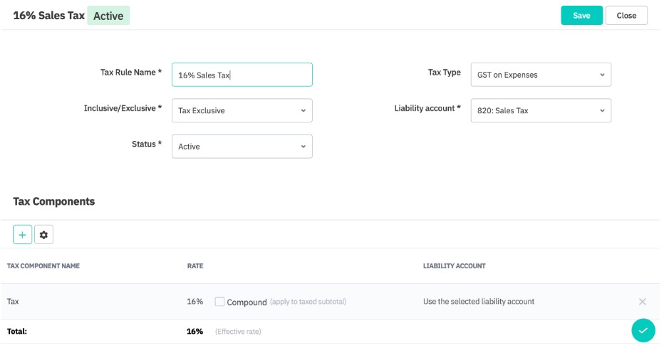 Sales Tax on Purchases - this tax rule will already exist in Cin7 Core. In our example, it is 16%. It is linked to the Sales Tax liability account.