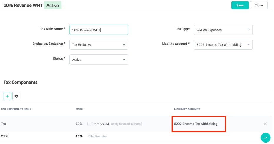 Revenue withholding rule - In our case, it is 10%, and is linked to the Income Withholding liability account.