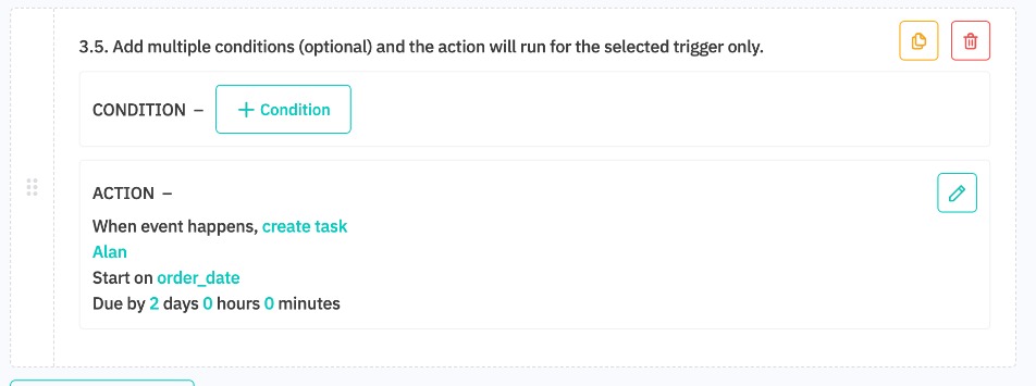 Create your workflows and experiment with different workflow automations. There are also a few examples of workflow automation that you can copy. You can also create additional conditions to decide exactly what records will be impacted by your automation.