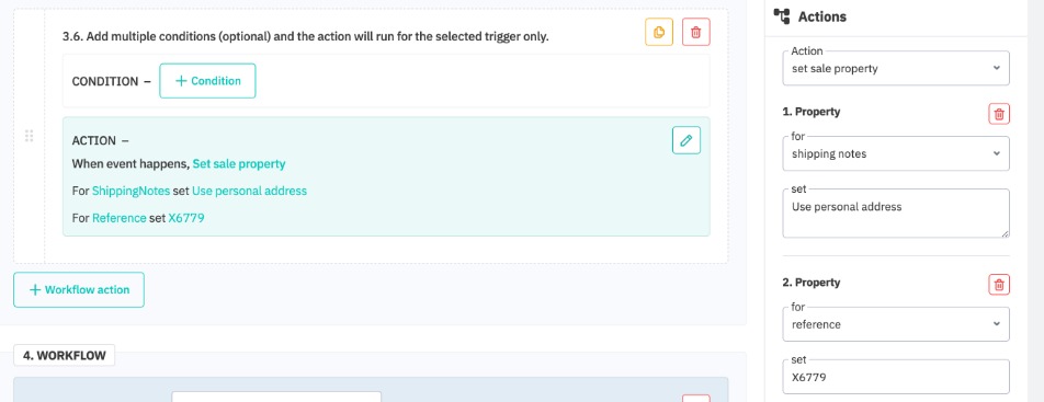 Set sale property action allows a user to set values for sale order fields. Set purchase property action allows a user to set values for purchase order fields.