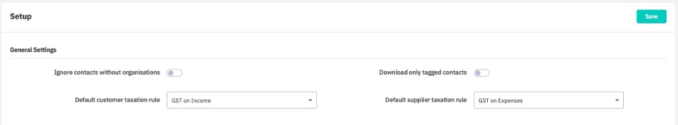 In the Setup tab, several integration settings can be customised.