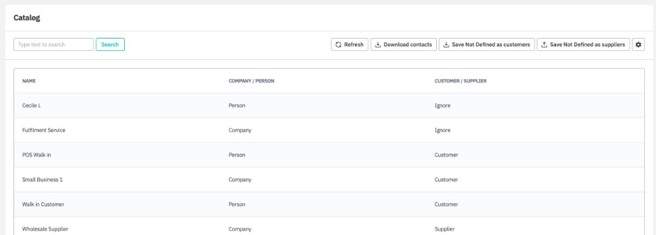 Contacts can be downloaded from Capsule from the Contacts tab. There is no automatic sync; download must be manually triggered by clicking Download Contacts. If a customer/supplier with the same name is found in Cin7 Core, the customer/supplier details will be updated. If not, Cin7 Core will attempt to create new customers and suppliers from the downloaded contacts. Refresh simply reloads the contact list, without downloading any new information from Capsule.