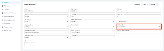 Once you have created an Attribute Set, it can also be assigned to a customer or supplier.