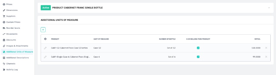 The Additional Units of Measure function allows more than one unit of measure to be specified for a product or service. For example, if the same bottle of wine is sold as an individual bottle, a case of 6, and a case of 12.