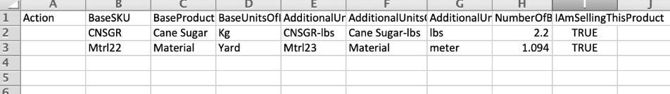 Navigate to the download folder, then open the template file. Using Excel or another spreadsheet program, copy and paste the additional units of measure that you exported out of your third-party system into the template. Make sure the data you copy matches the column headings provided in the template.