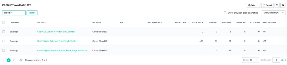 Now when you look at the availability report, you can see that there are 60 singles on hand, but 5 12-packs, 10 6-packs and and 60 singles available for sale.