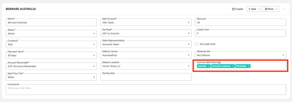 Type the Customer Tag into the field.