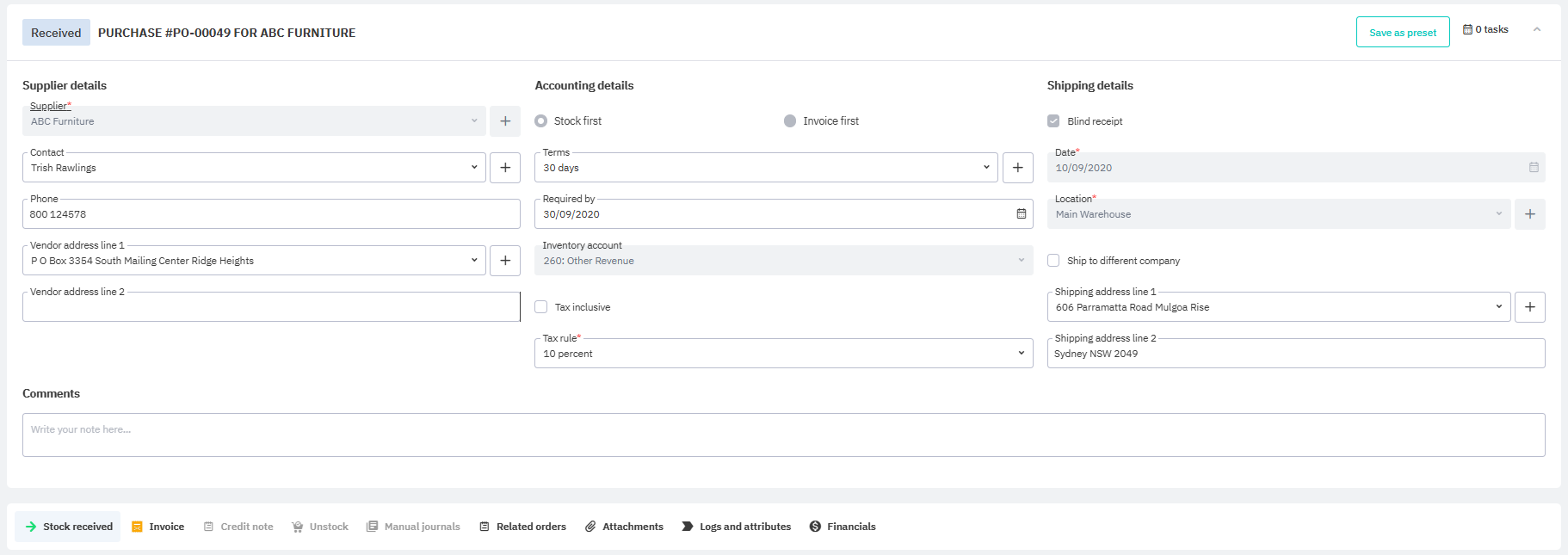 Stock received line items (draft only)