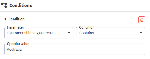 You can add a parameter, condition, and specific value. This will limit your automation to items that match your criteria. Every module has different available parameters and conditions. For example, if you wanted to target all sales orders shipped within Australia.