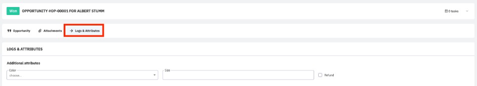 Section 1 covers additional attributes. Using additional attributes, you can add up to 10 custom fields to your sales process. If you have no additional attributes applied to the sales process, this section will not be visible.