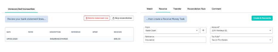 Create Spend or Receive Money transactions to reconcile: