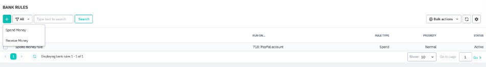 In the View Bank Rules screen, click + (i.e. Create a new rule) and select from: