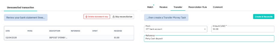 Click Create & Reconcile button to reconcile the transaction.