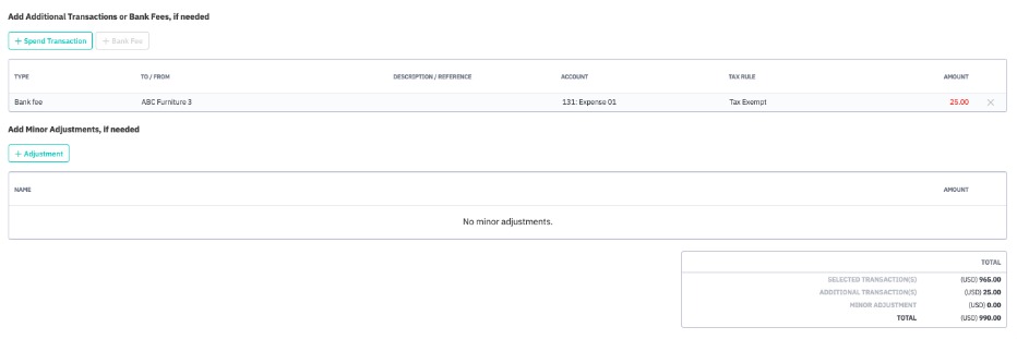 You can then add any bank fees or minor adjustments, if applicable.