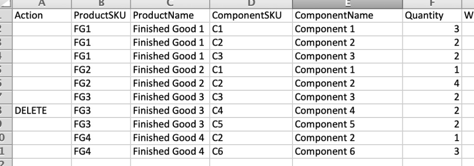 This generates a blank BOM CSV file when you can enter BOM details for one or more products.
